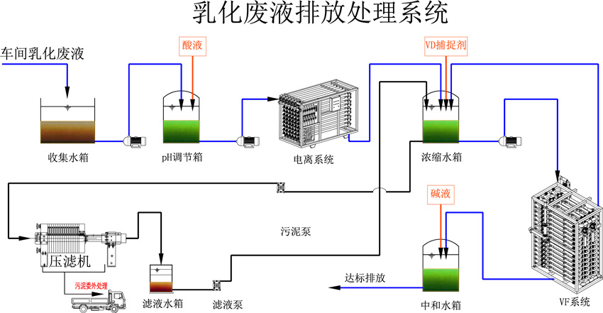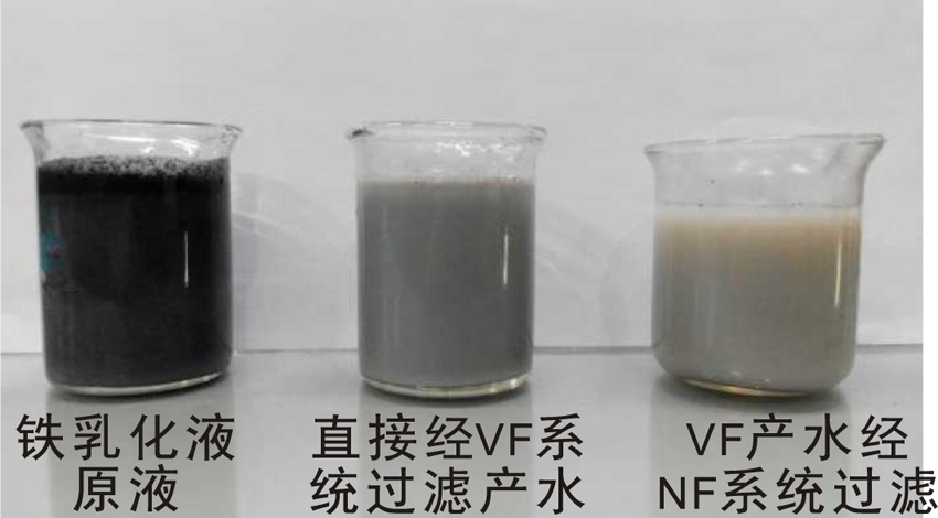 4. 產(chǎn)水添加合適比例的乳化劑后直接回用于生產(chǎn),降低生產(chǎn)成本。鐵乳化液——采用VD回用處理工藝水質(zhì)變化示意圖