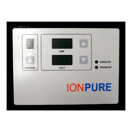八通道顯示板設計為與 Ionpure 直流配電板一起使用,用以控制至多八個 Ionpure 模塊的電壓和安培數。