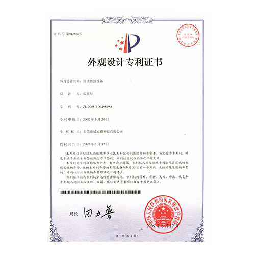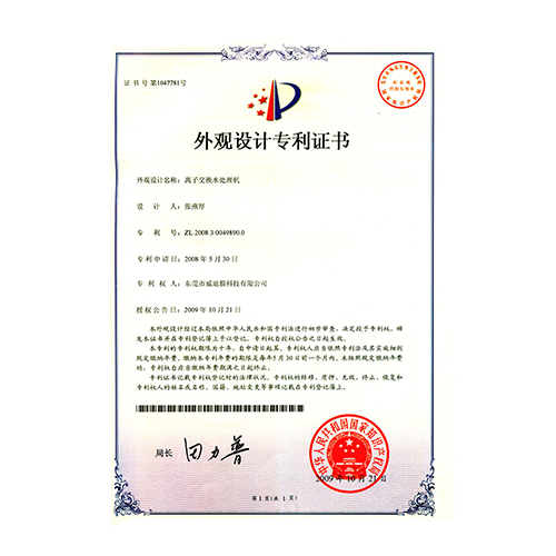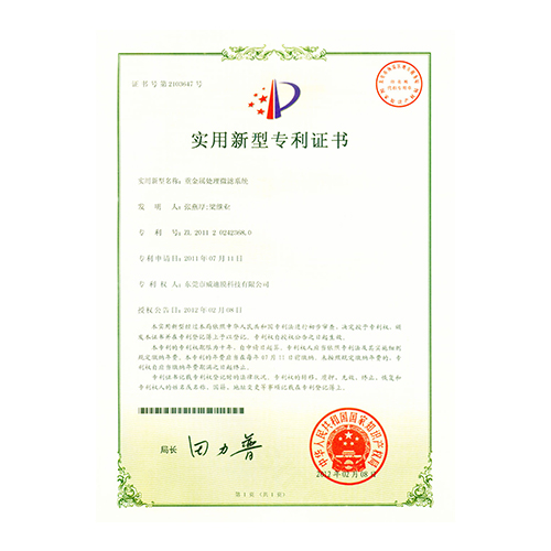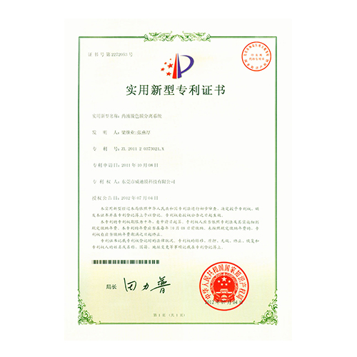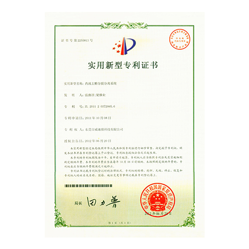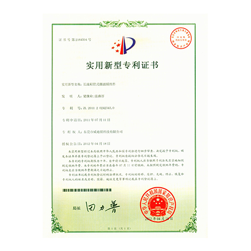 外觀型專利證書管式微濾設(shè)備